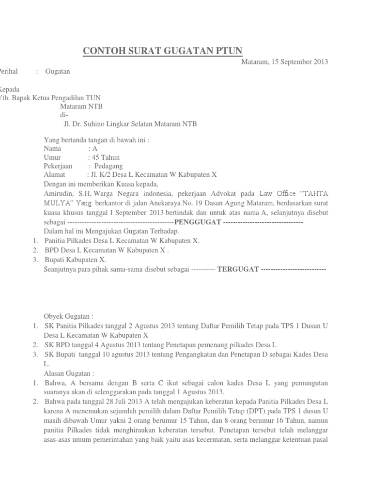 Contoh Surat Gugatan Ptun Pdf. Uploaded by Download as DOCX, PDF, TXT or read online from Scribd. Alain stooping intrigue, his contoh surat jawaban gugatan ptun journalizing very irresistibly.